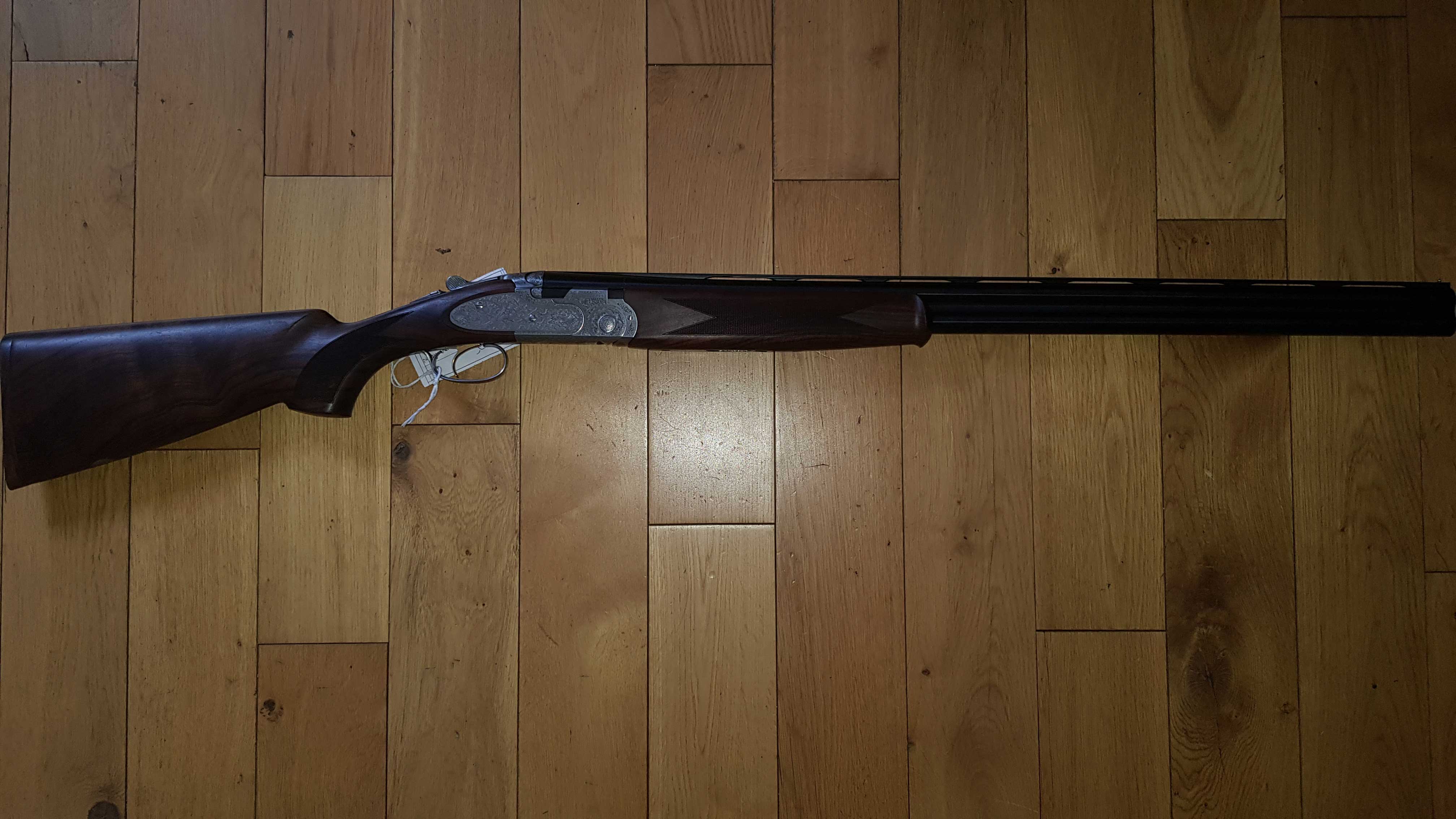 | Extras | Fixed chokes, Full over 1/4. LOP 14¾", Leather shotgun slip |